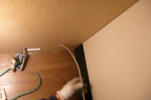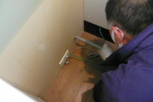 IHクッキングヒーターの専用配線は、撤去したガス配管穴を利用します