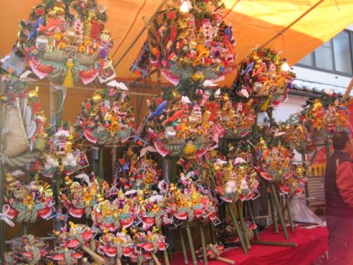 縁起物の露店も飾り付けを始めました