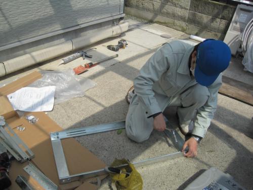ヒートポンプの架台を組立てます