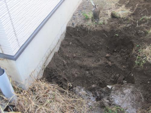 エコキュートを据付ける場所を掘削します