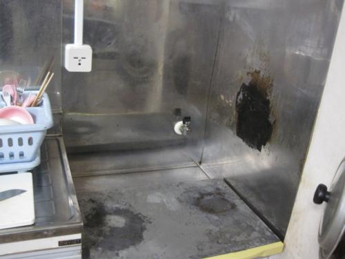 ガスコンロの火が ステンレスの壁にあたって 壁が黒く焦げて心配でした