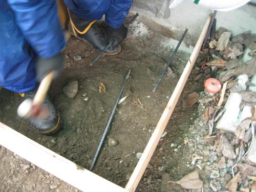 建物の基礎に鉄筋アンカーを打込みます