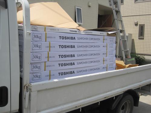 太陽電池モジュールを屋根に上げます