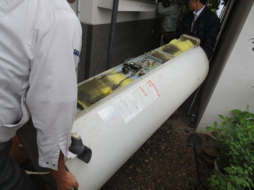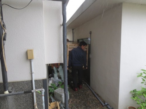 電気温水器を運び出します
