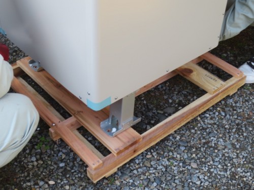 エコキュートの梱包の木枠をはずします
