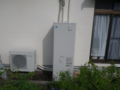 長野県岡谷市で都市ガス給湯器をエコキュートに交換しました。(長野県長野市電気工事)エコ電化本舗㈱大光電気商会
