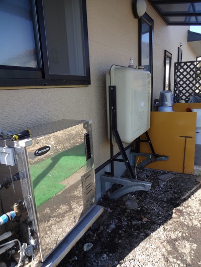 撤去前の灯油給湯器と灯油タンクです