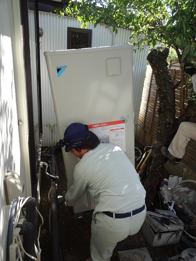 長野県長野市で灯油給湯器をエコキュートに交換します。