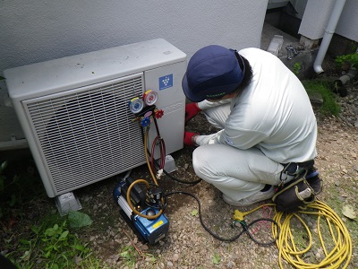 引越しのエアコンを取付けます。どのようなエアコンでもすべて対応します。(長野県長野市電気設備工事)エコ電化本舗㈱大光電気商会