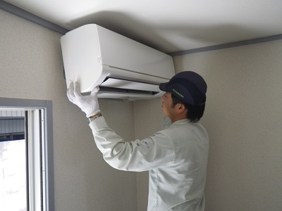 長野県長野市でアパートへエアコンを取付ます。(長野県長野市電気設備工事)エコ電化本舗㈱大光電気商会
