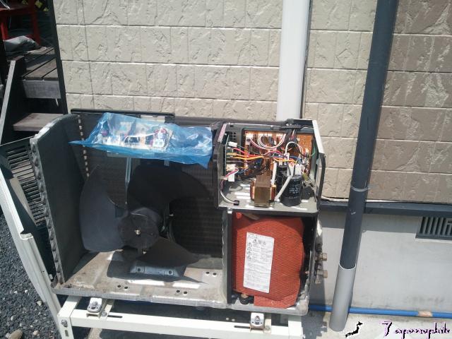 次の修理先の症状は、室外機のファンが動かない!ファンモーター交換です。