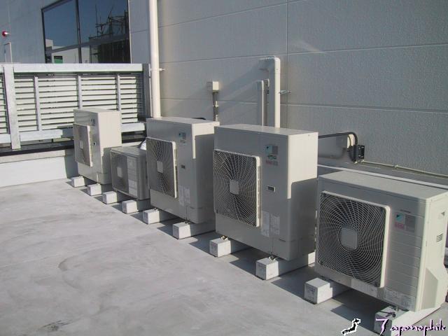 横一列に並べて室外機設置しました。