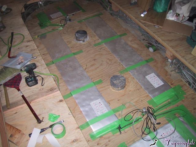 掘りコタツ形式の客席、足元に電気ヒーターを埋設します。