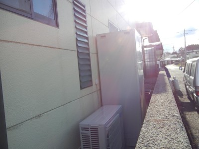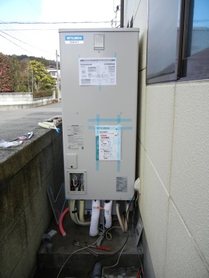 ガス給湯器からエコキュート(460リットル)に交換工事を行います。