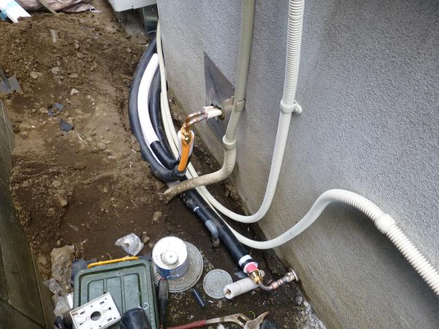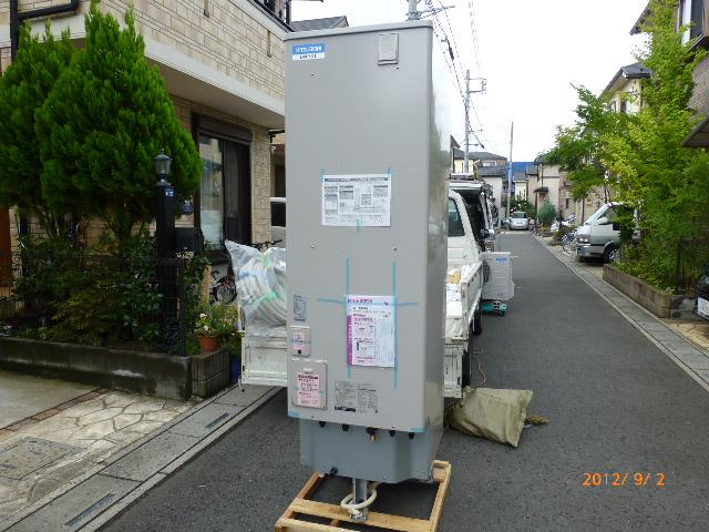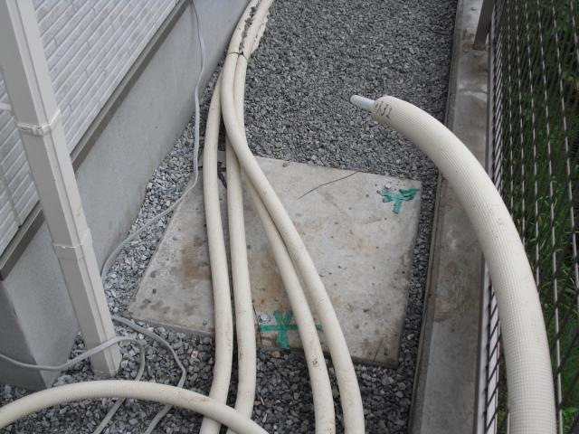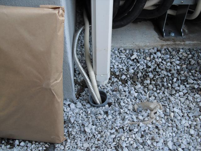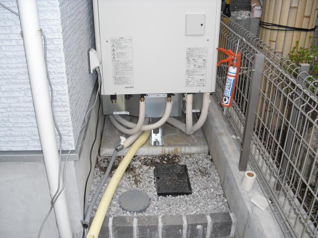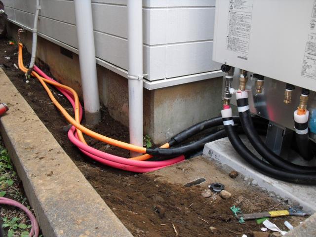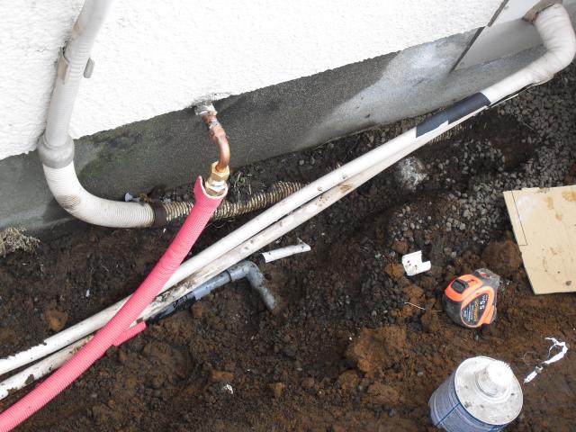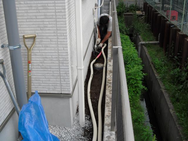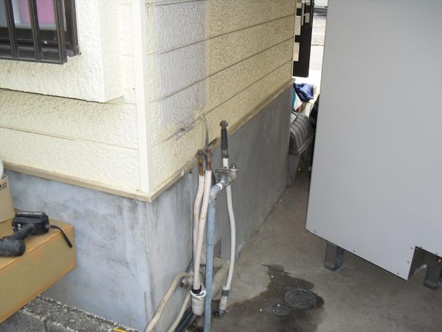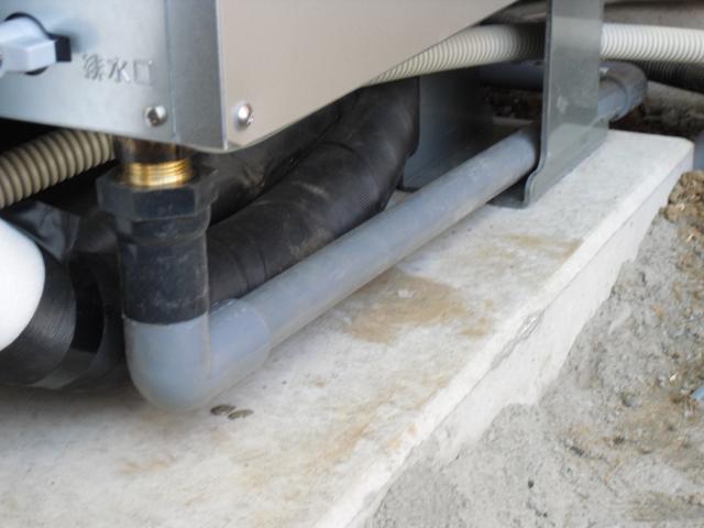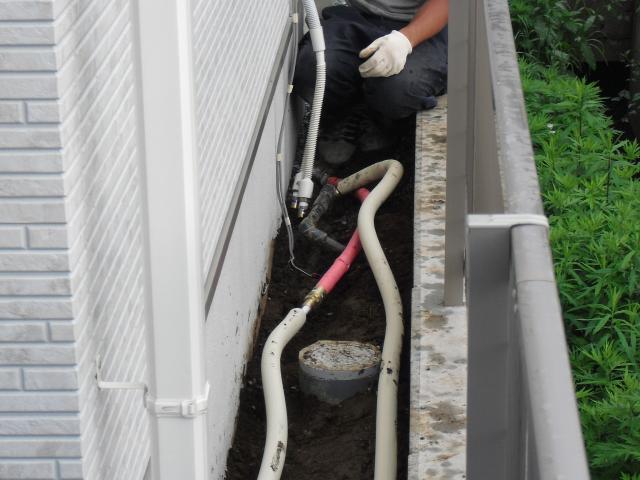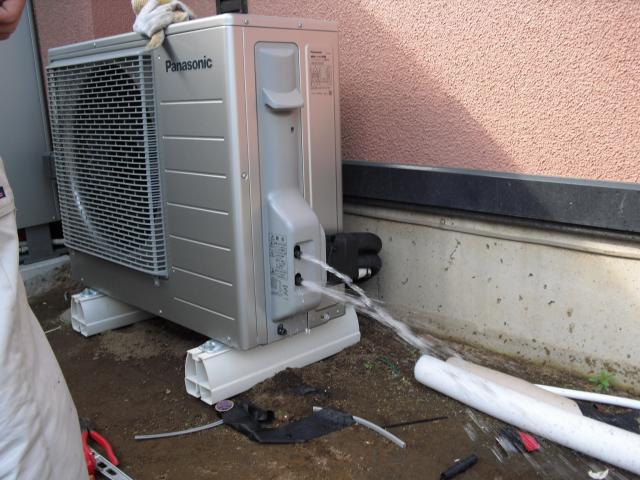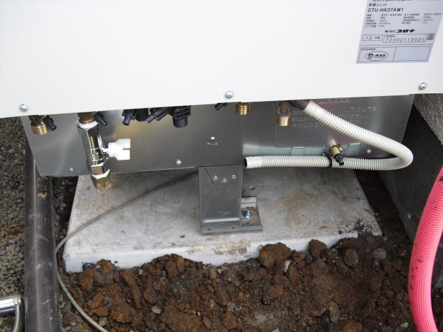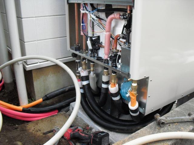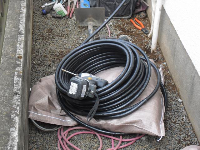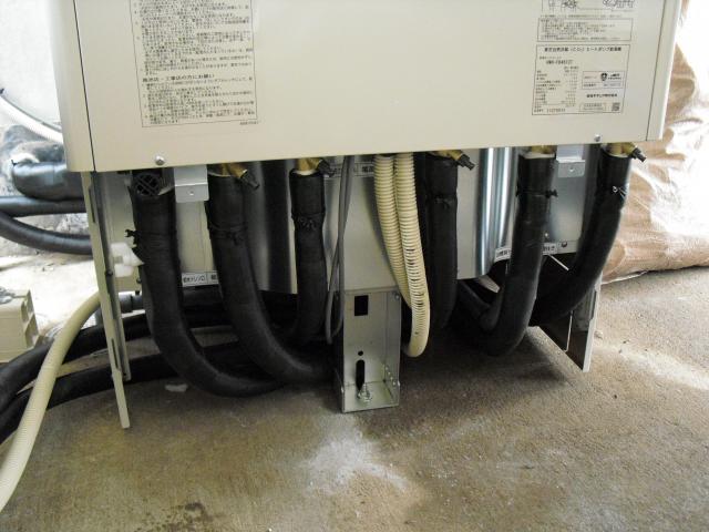 2012年9月10日 オール電化設置工事↑ ECOキュートの土台はまず砂利を敷きセメントを練り合わせ確りと土台を作り平板基礎を設置致します。