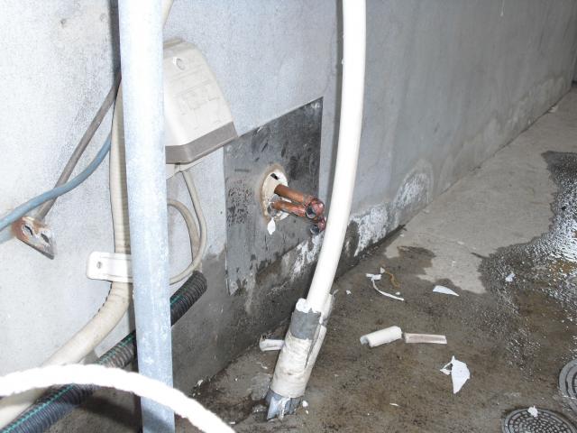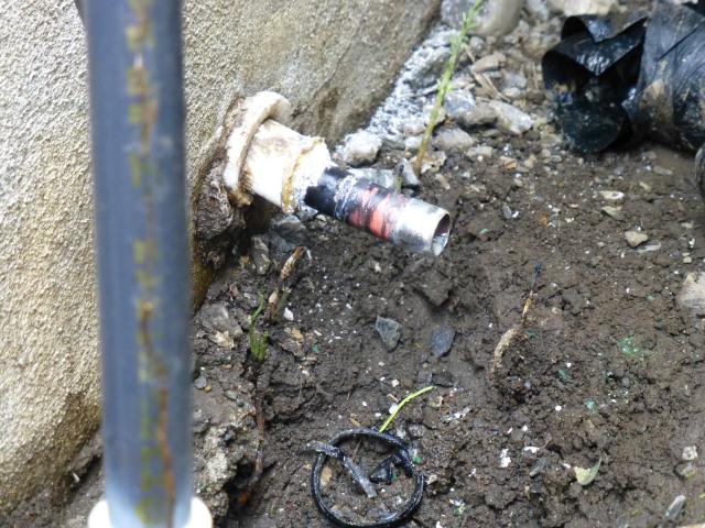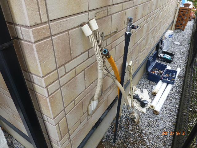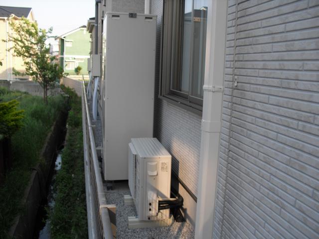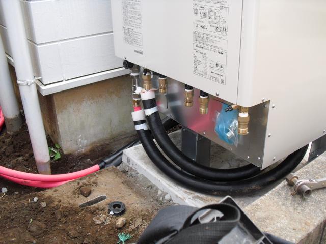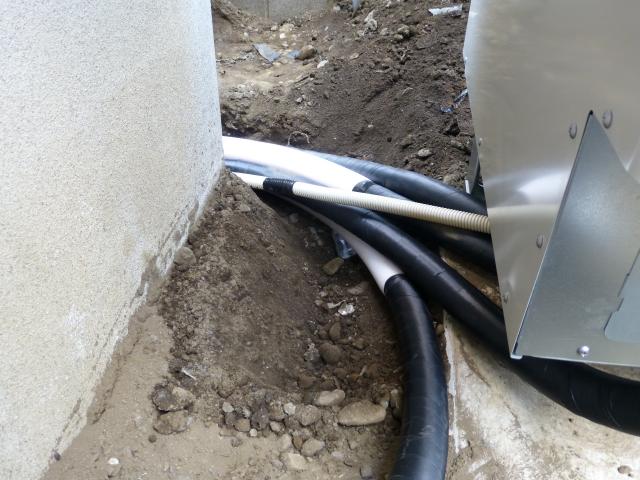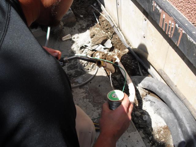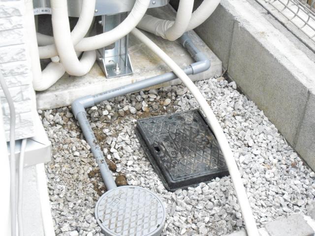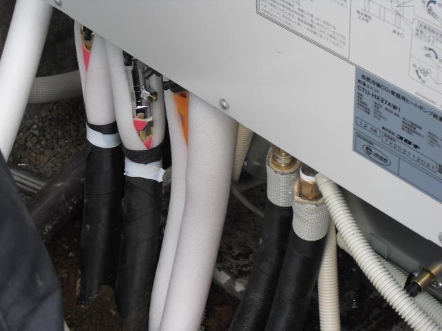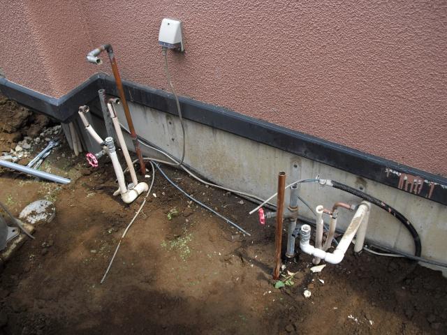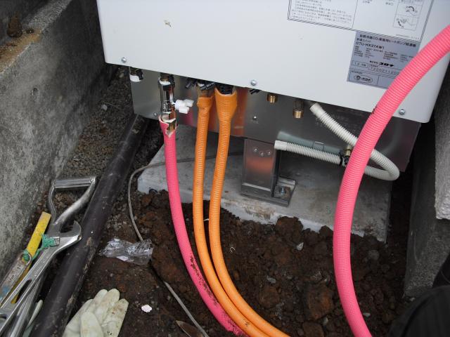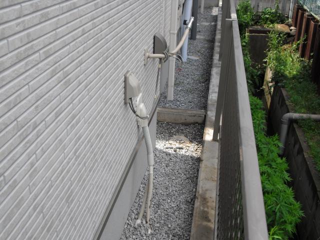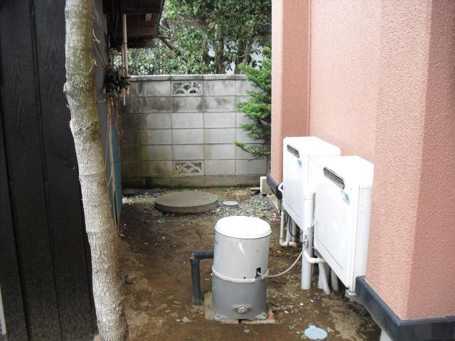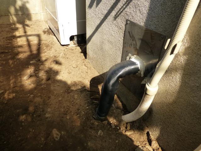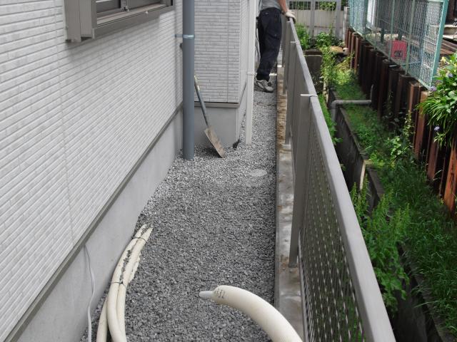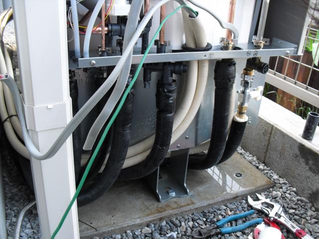 2012年9月10日 オール電化設置工事↑ ECOキュートの土台はまず砂利を敷きセメントを練り合わせ確りと土台を作り平板基礎を設置致します。