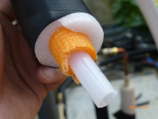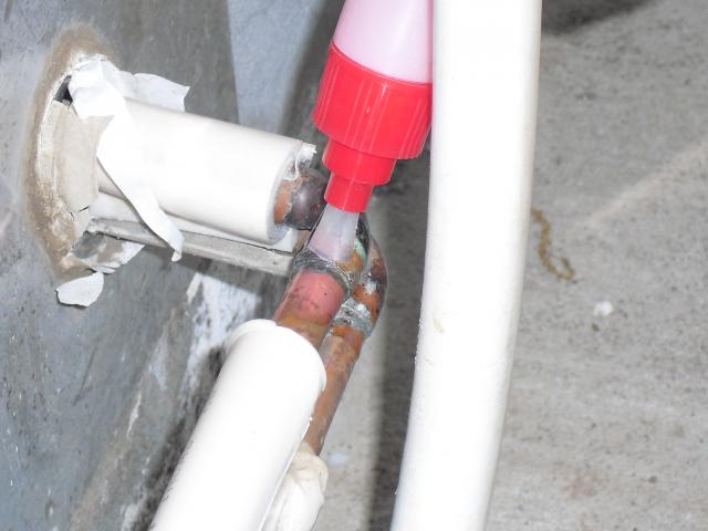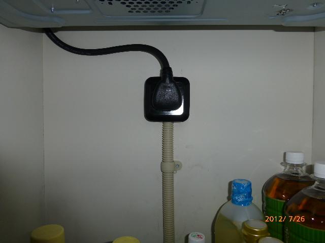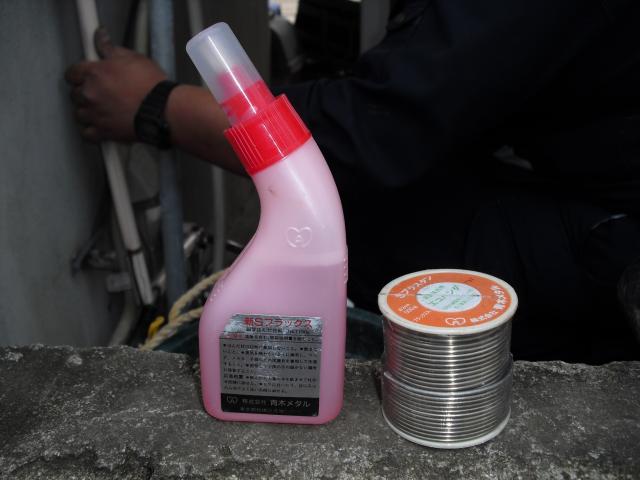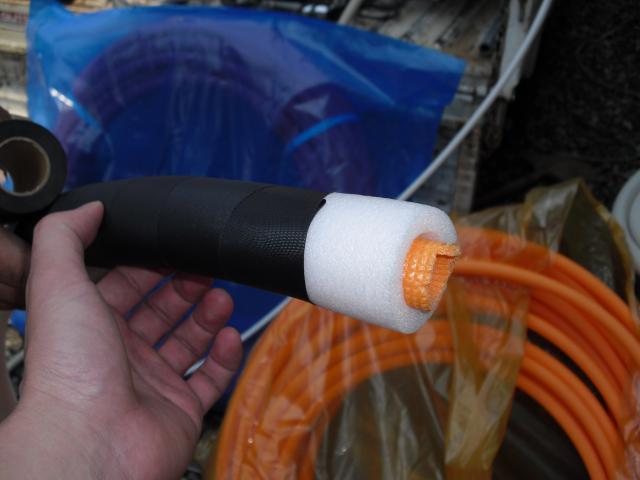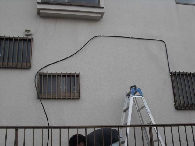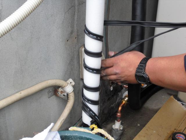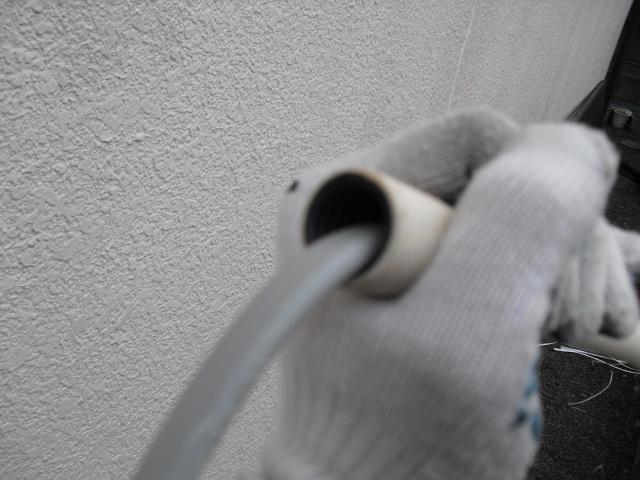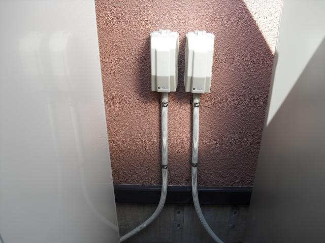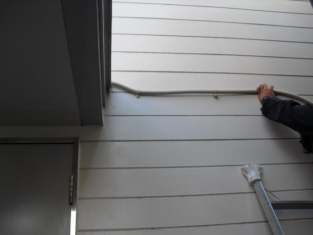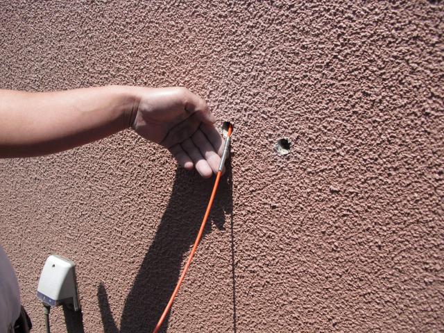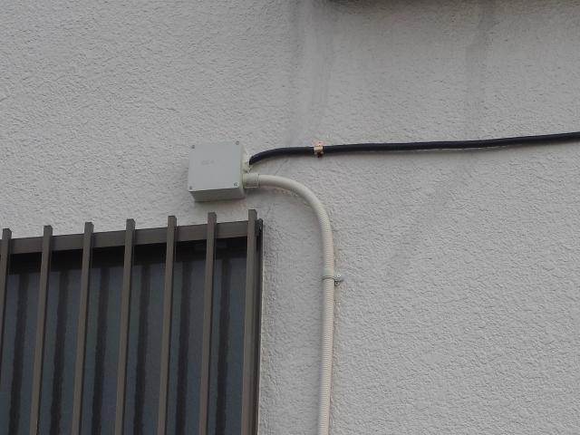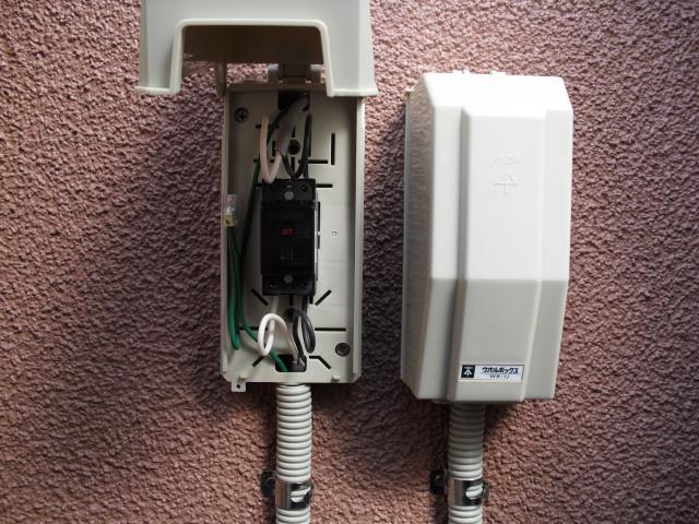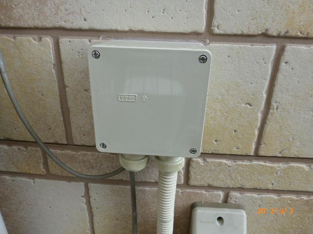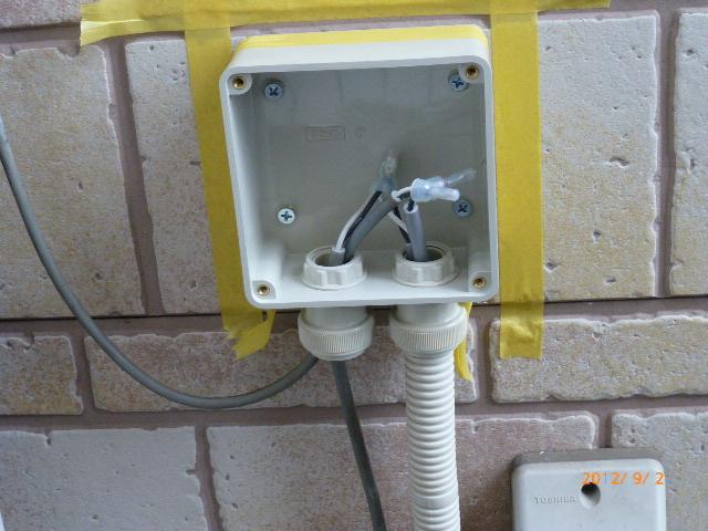 ↑ 外部配線BOXを固定する時もマスキングテープで養生をし、シリコンを接着します。
