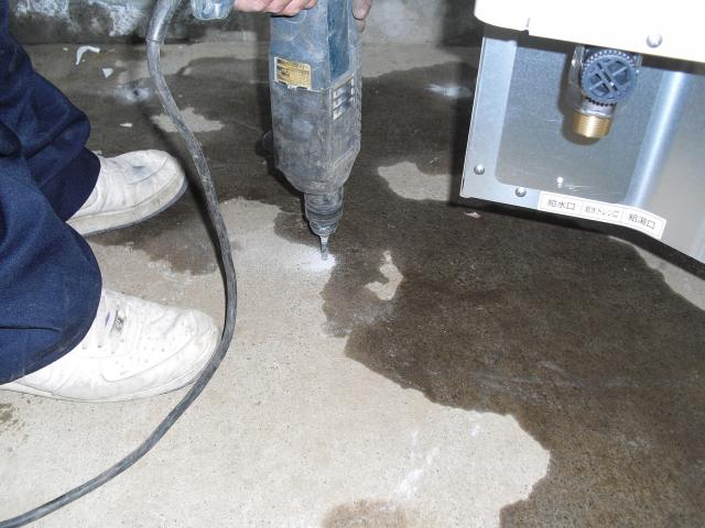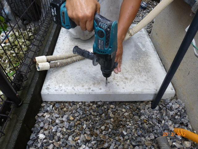 ↑ 基礎平板にはECOキュートを固定する為にアンカー穴を開けます。