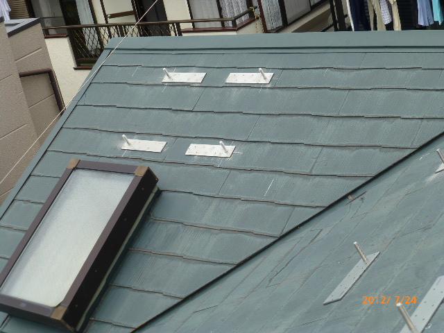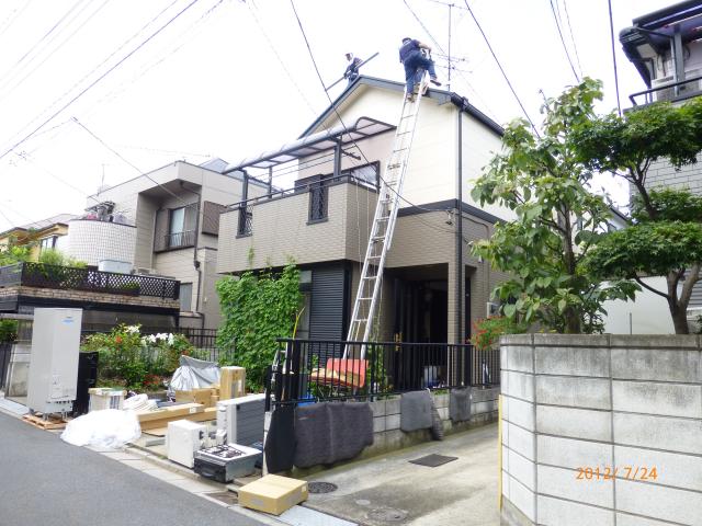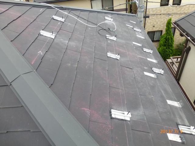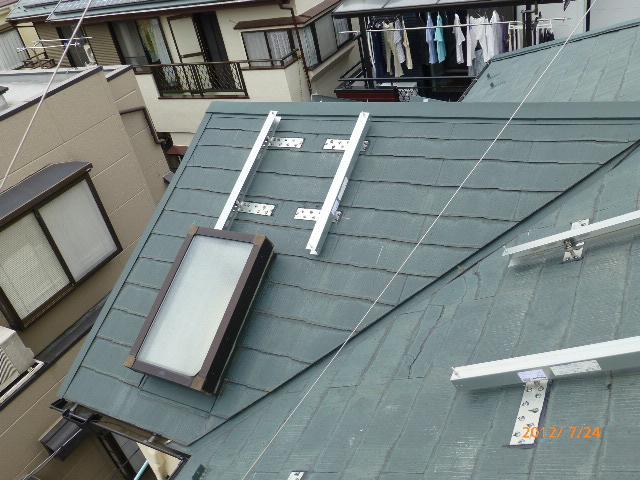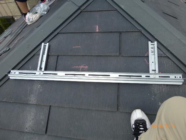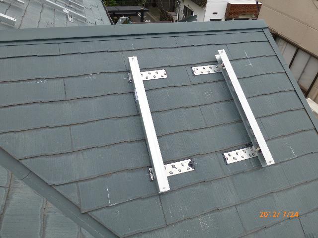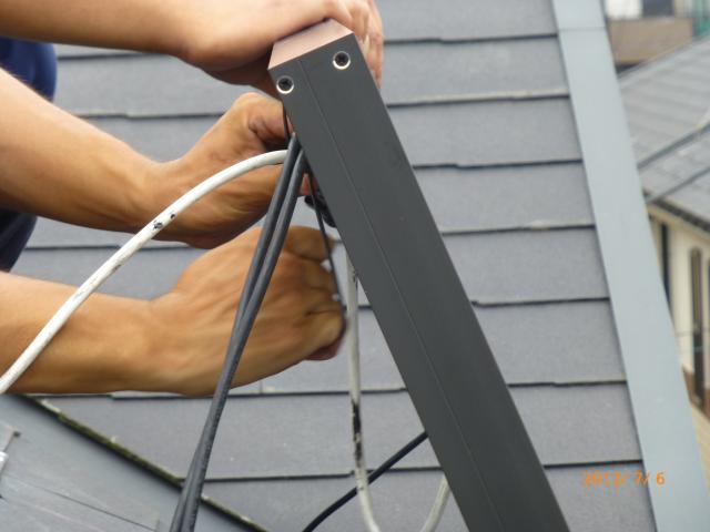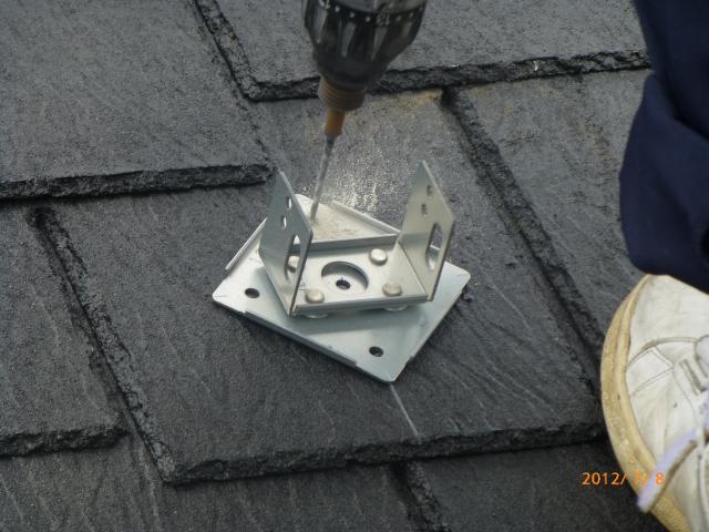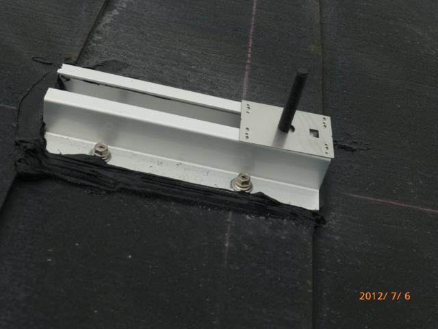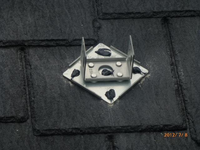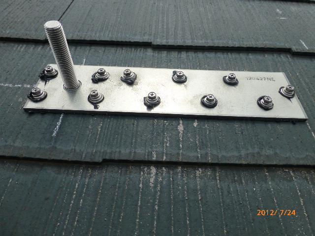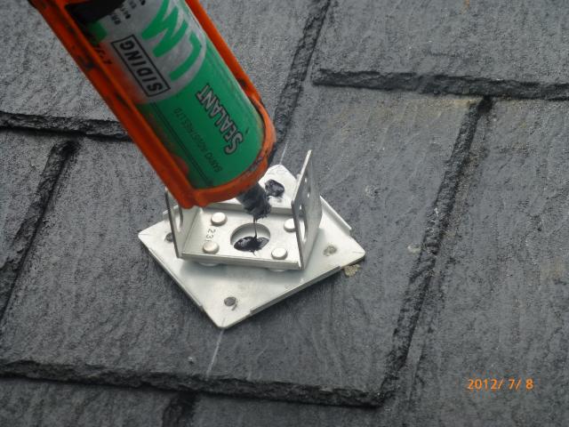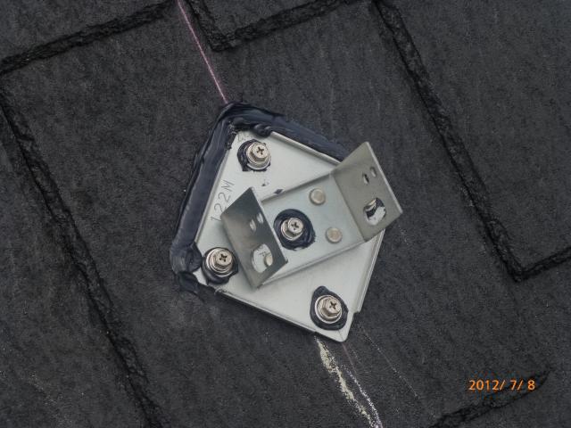 ↑ 支持金具を固定し特殊な液体を刷毛で塗り防水シーリングを致します。当社自慢の3次防水 必見です。