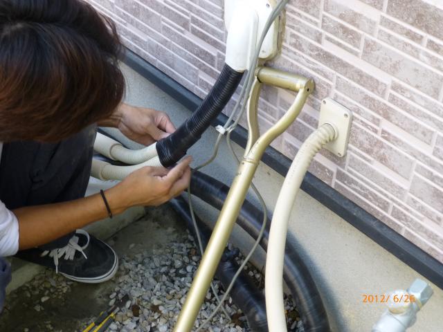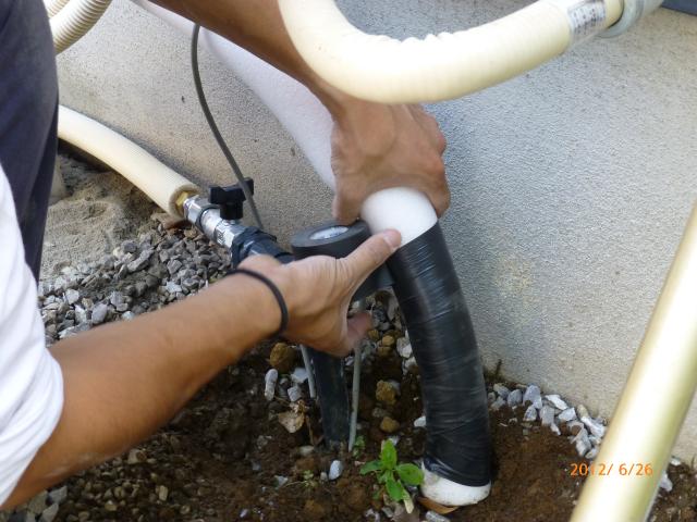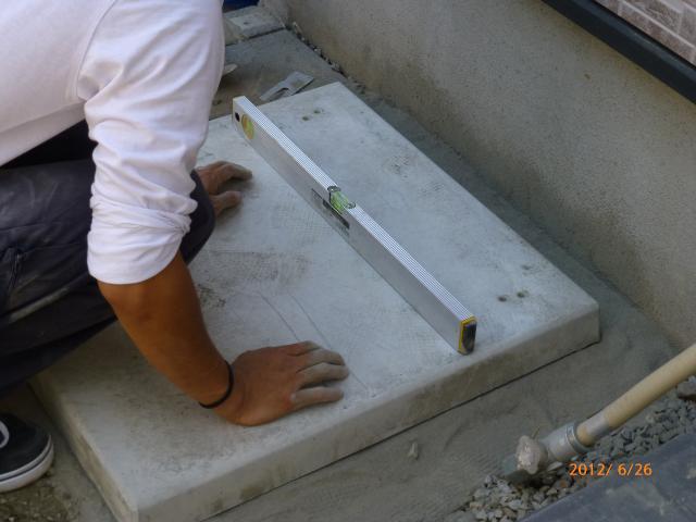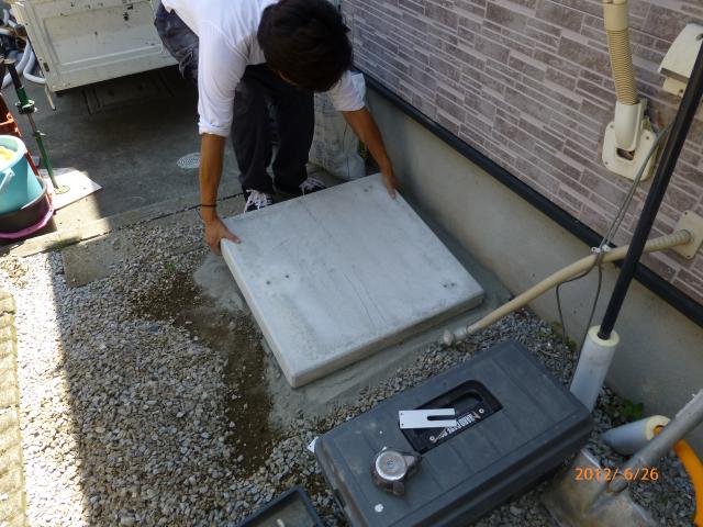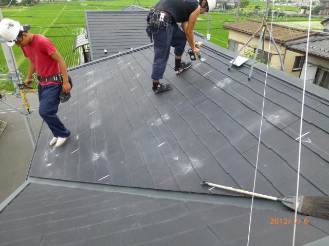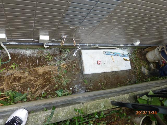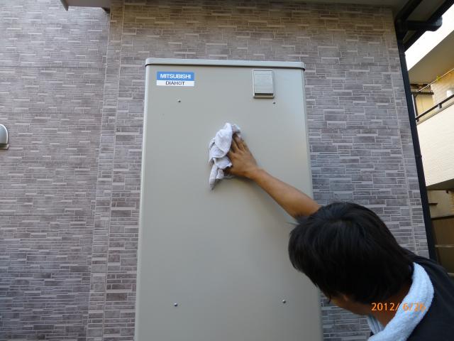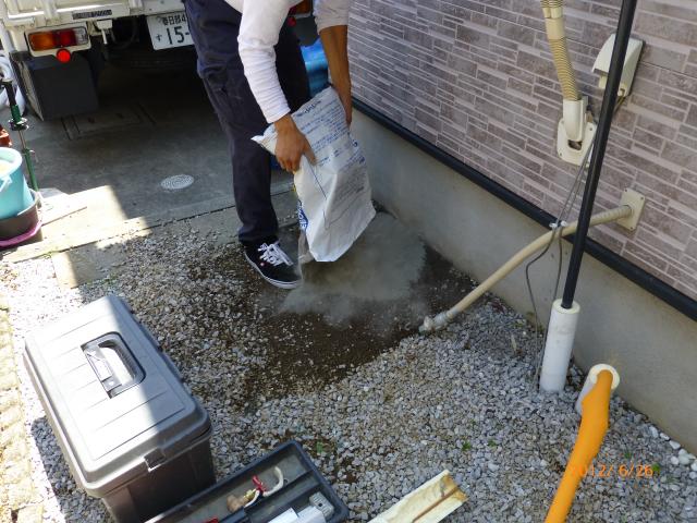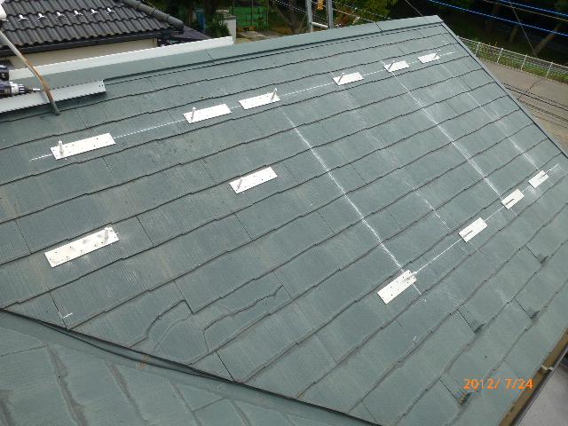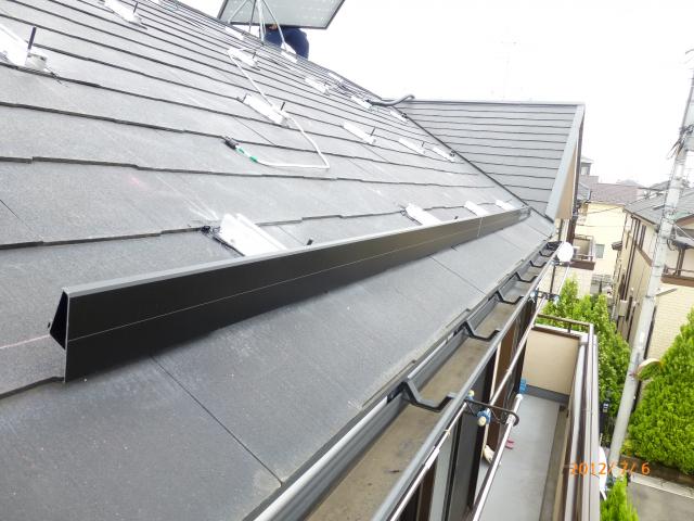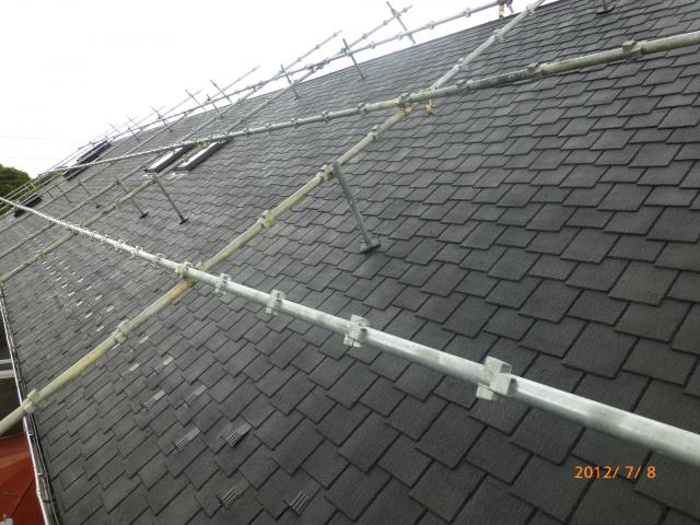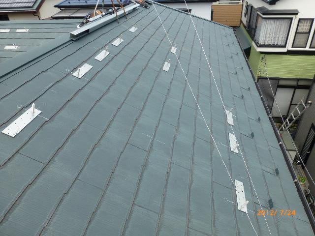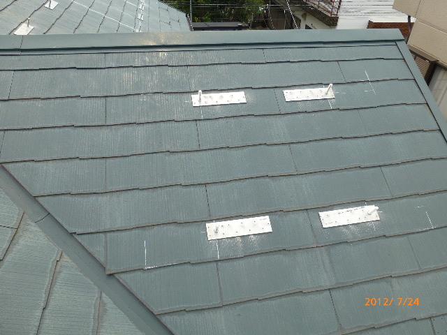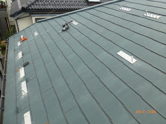 ↑ 支持金具を固定し特殊な液体を刷毛で塗り防水シーリングを致します。当社自慢の3次防水 必見です。