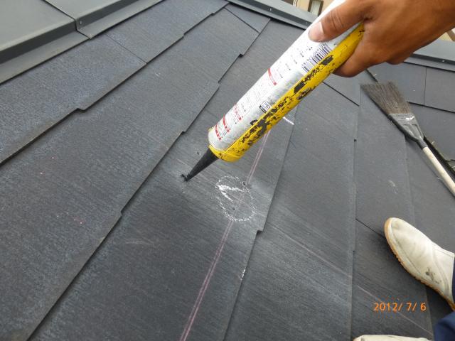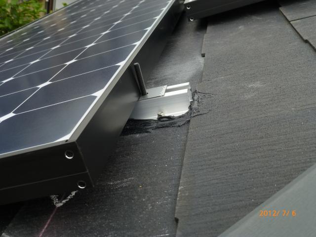 ↑ 支持金具の下になる部分はわざとシーリング致しません。雨を流し落とす効果があります。