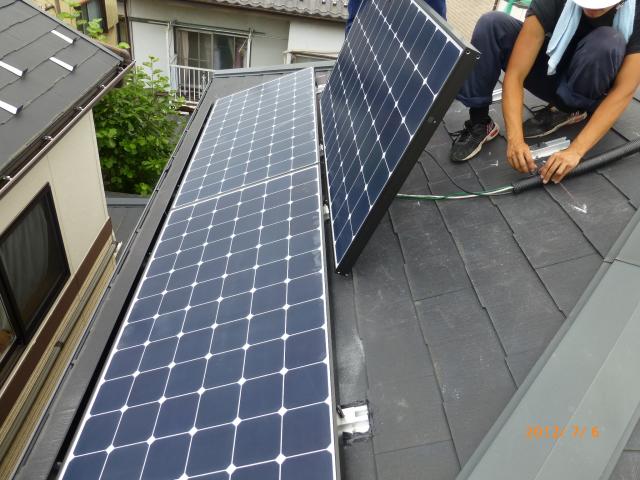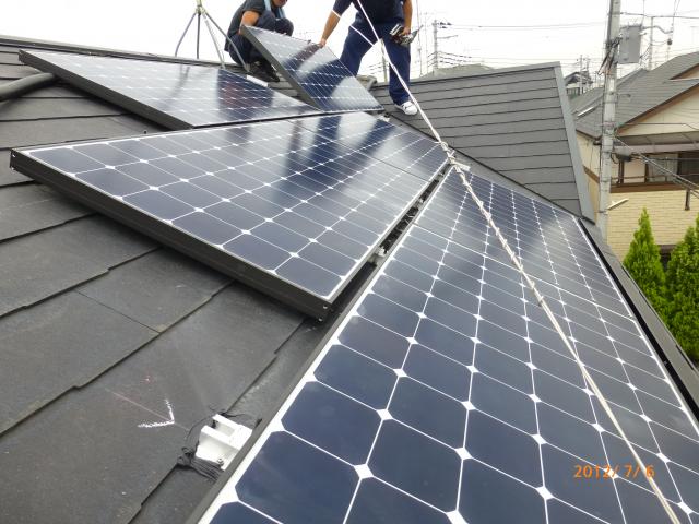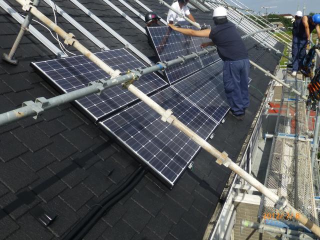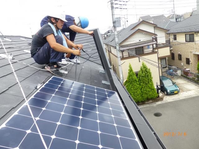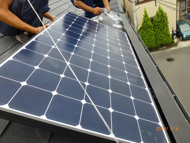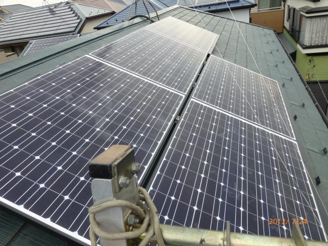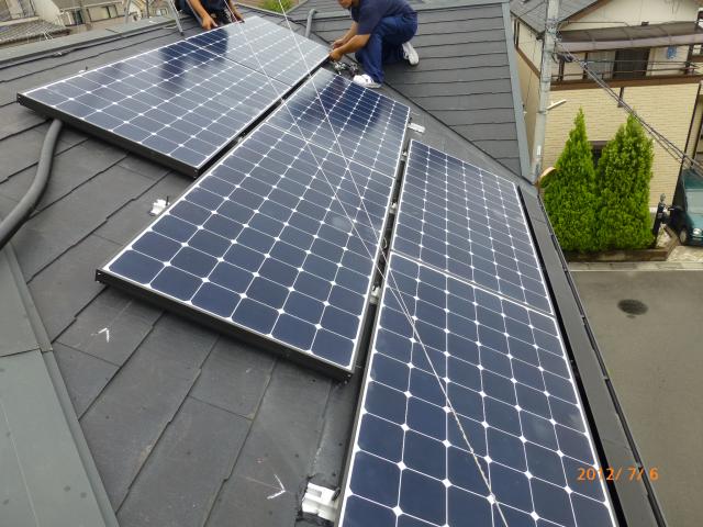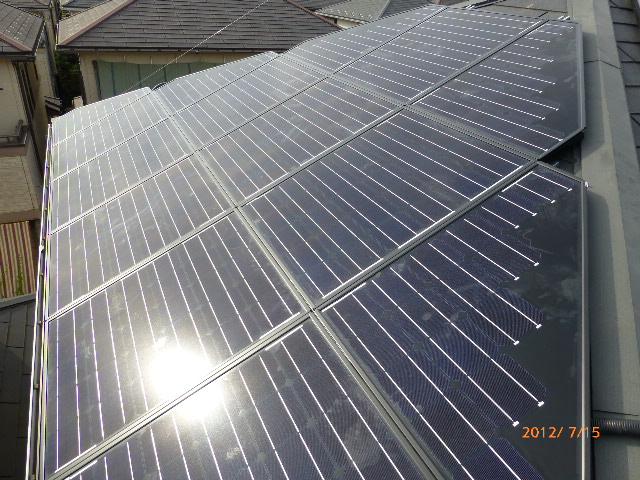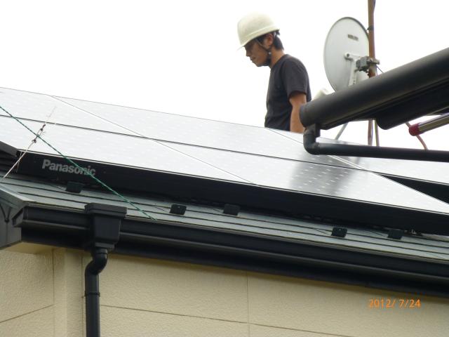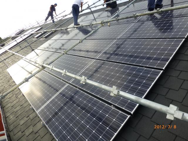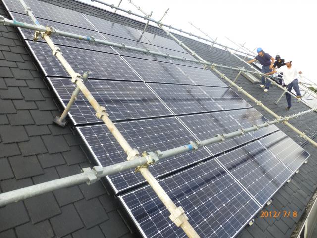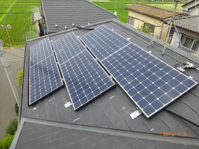 この度はPanasonic製太陽光発電233w 80枚 18.64kw1面設置と産業扱いとなり余剰電力と違い全量買い取りと素晴らしいシステムでございました。全量買取は発電した電力を全て東京電力が買取いたします。施工期間は2日間とかかりました。1面設置で大変やりやすかったので2日で終わり職人達も事故もなく無事に終わらせる事ができました。産業用は全量買取なので、モニターは付属しないのですが、今回は一軒家としての扱いなのでモニターを接続する事ができました。 もちろん現在生活しているお住まいです。 売電収入は1ヵ月最低5万円以上というシュミュレーションでした。 発電が望ましたい季節はとても売電が期待できますね。今後もサポートさせていただきますので、宜しくお願いします。 本日はありがとうございました。