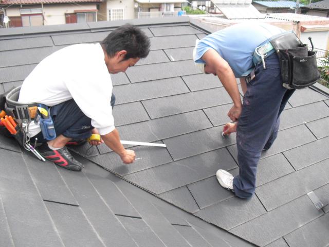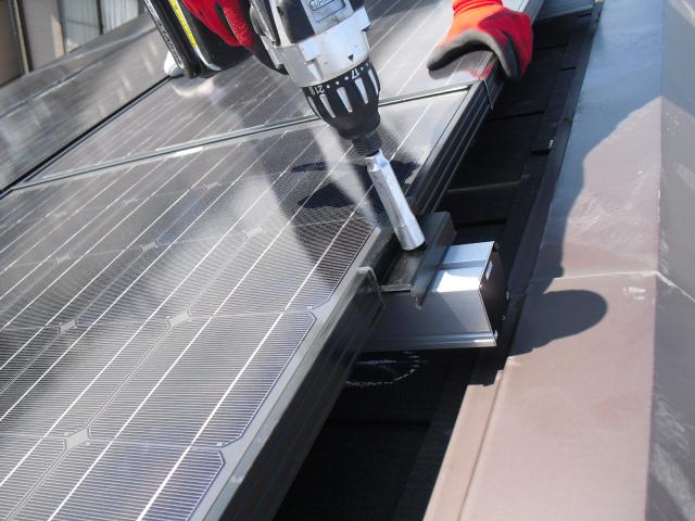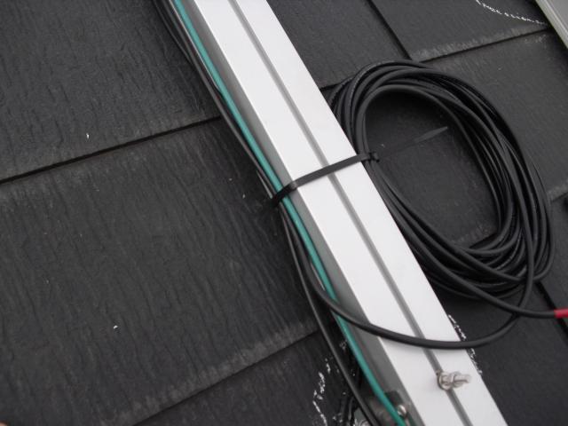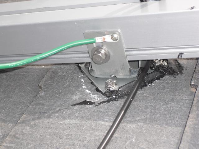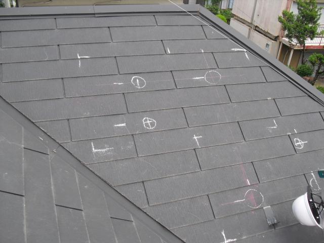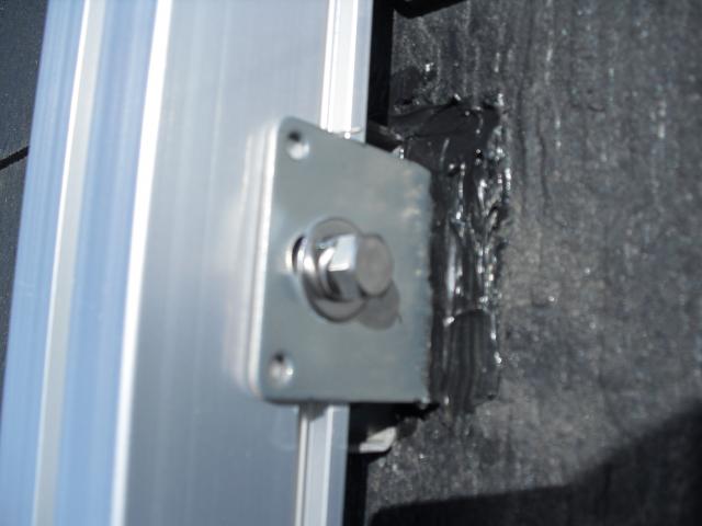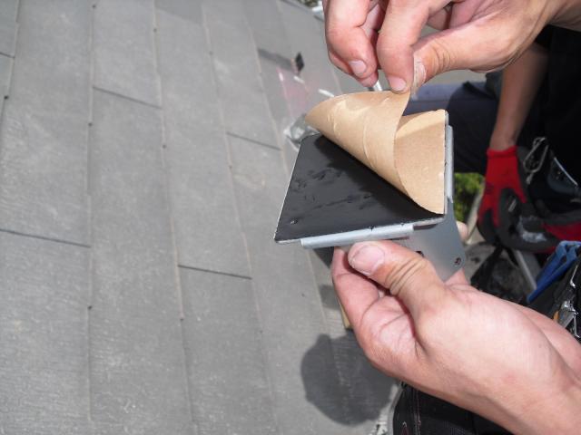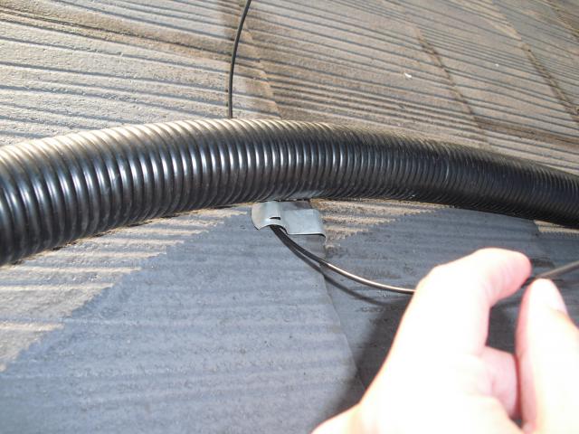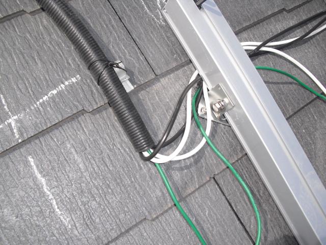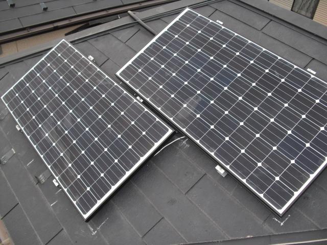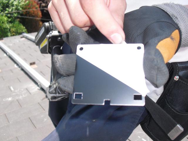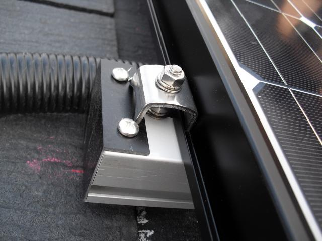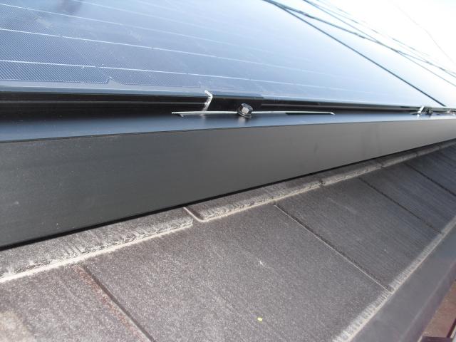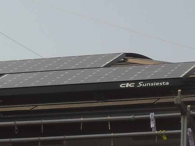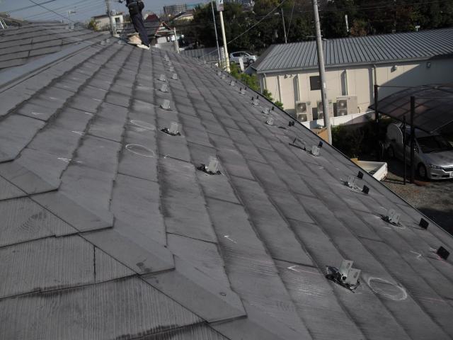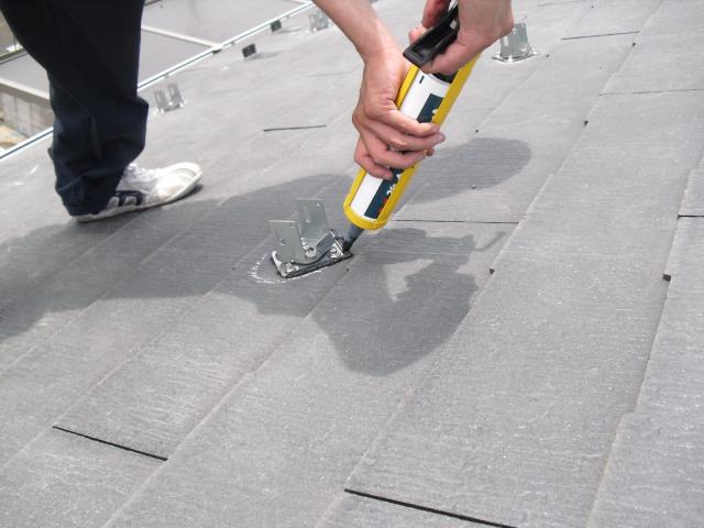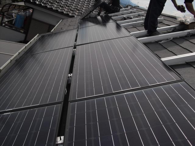 2012年7月3日 太陽光発電設置写真↑太陽光の架台を付ける為に、セメント瓦を一枚一枚剥がしアンカー金具を設置します。