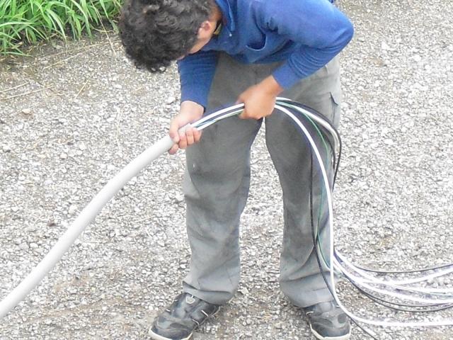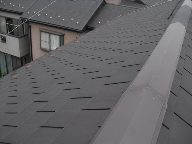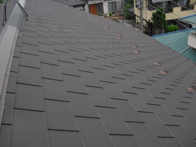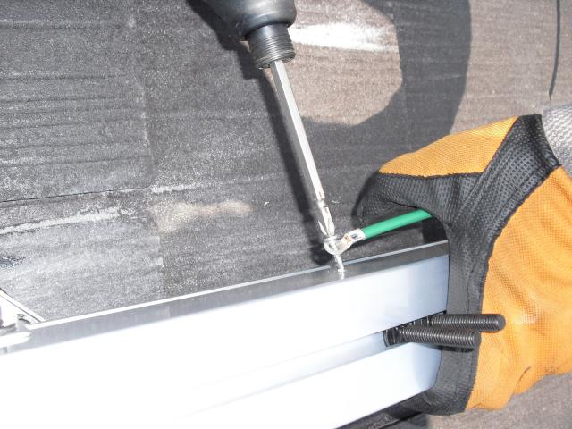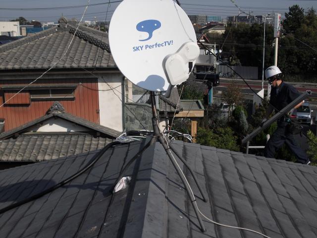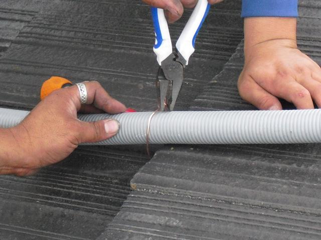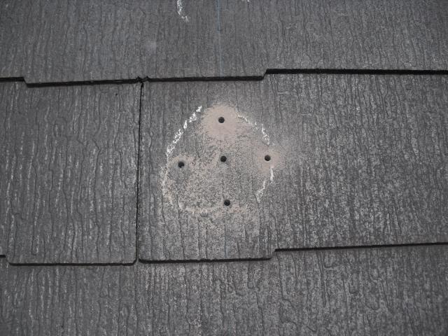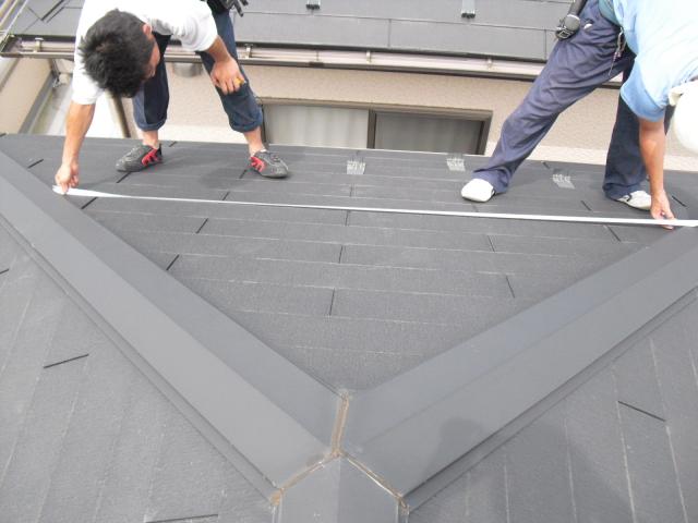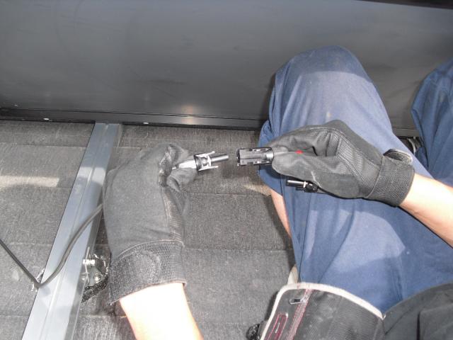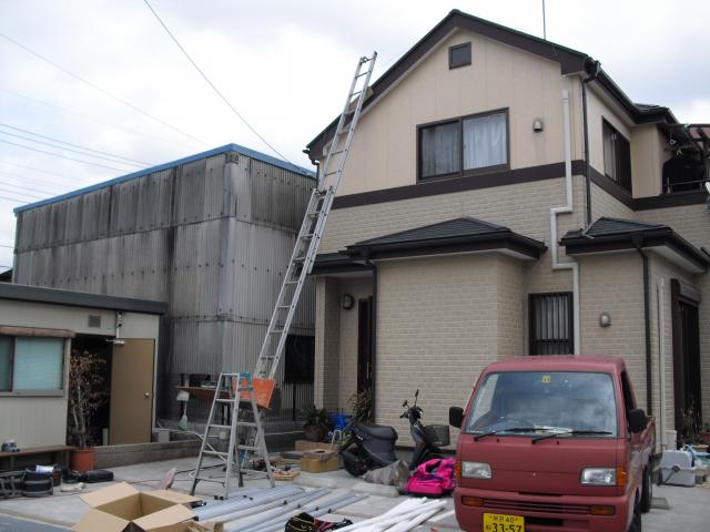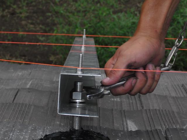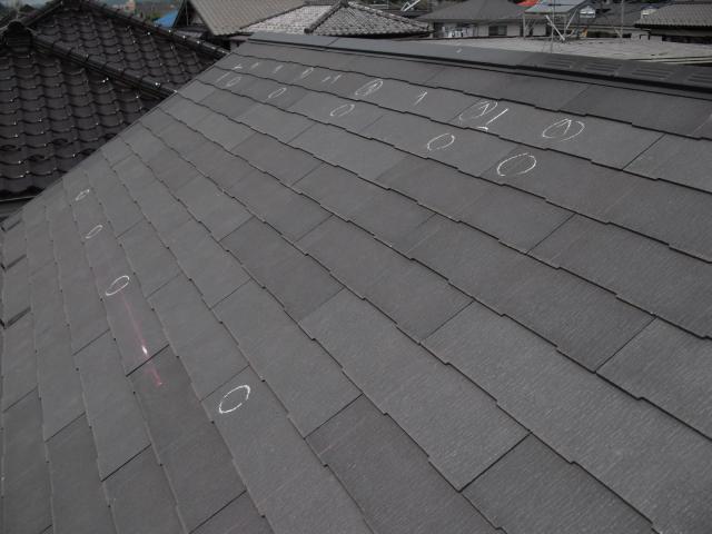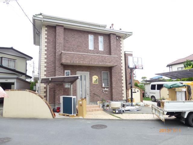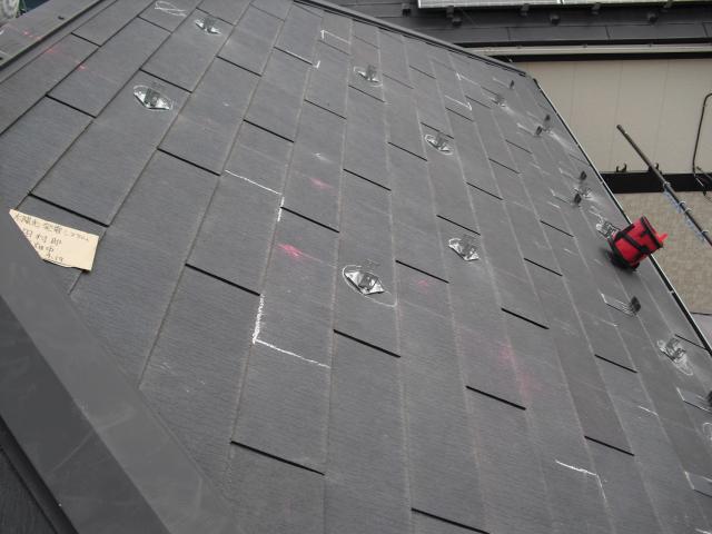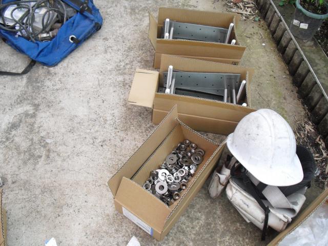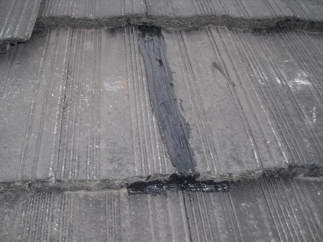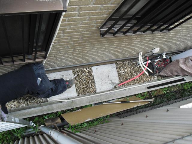 2012年7月3日 太陽光発電設置写真↑太陽光の架台を付ける為に、セメント瓦を一枚一枚剥がしアンカー金具を設置します。
