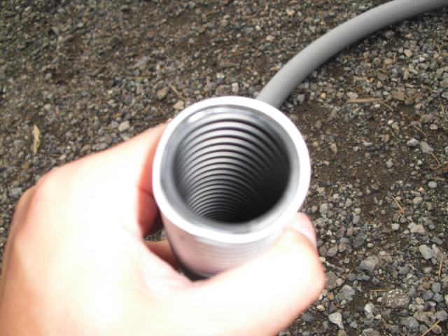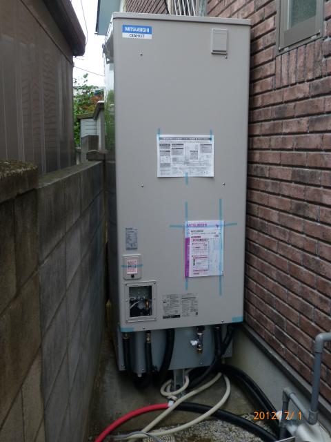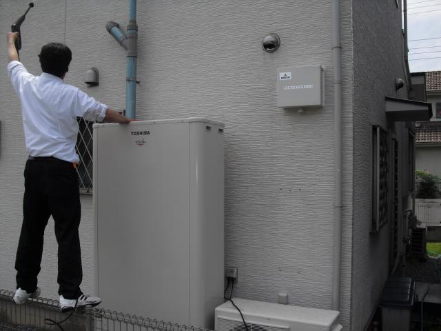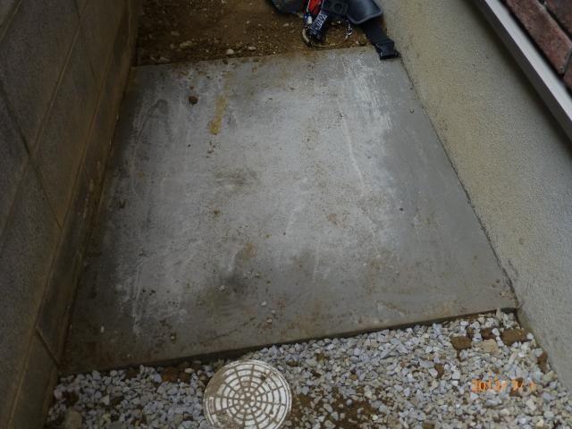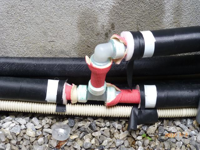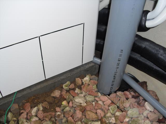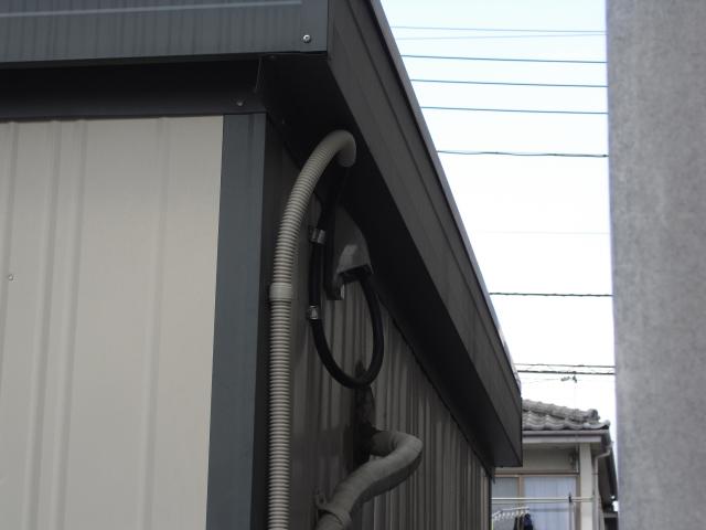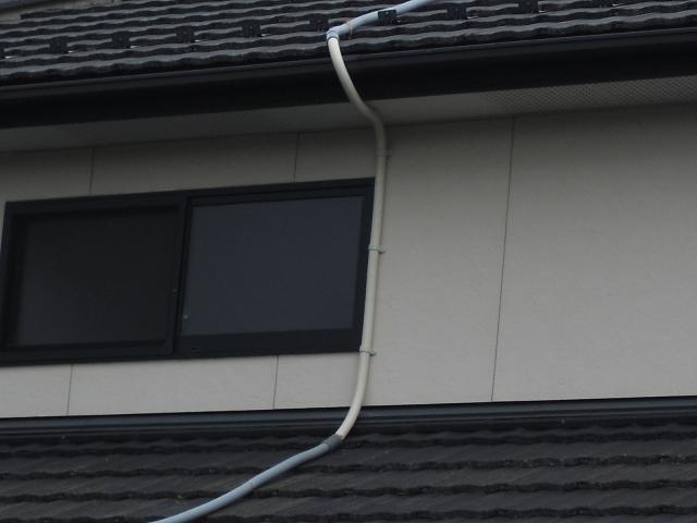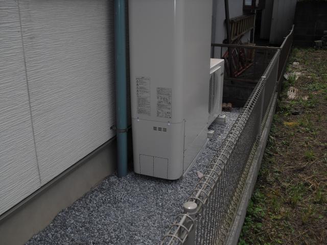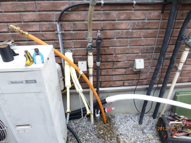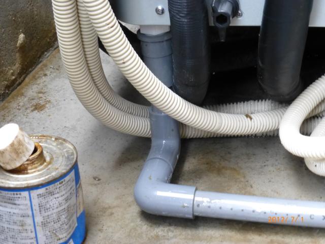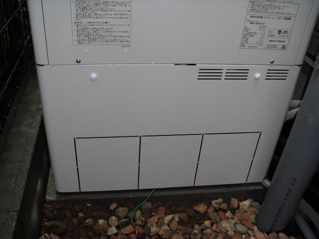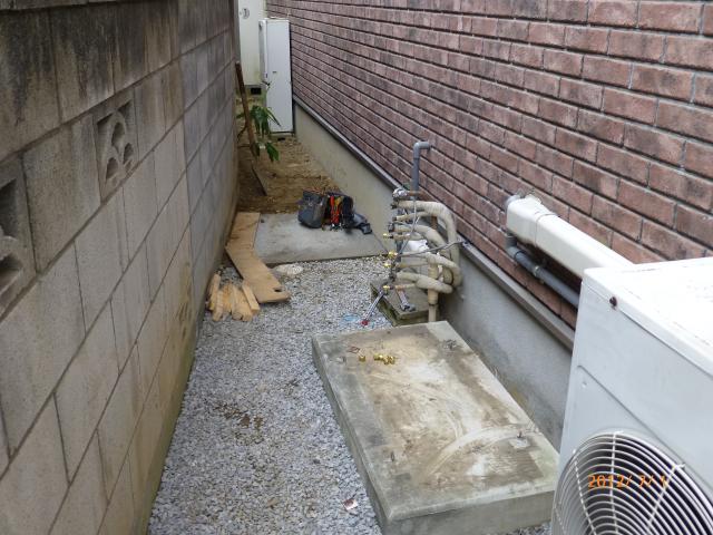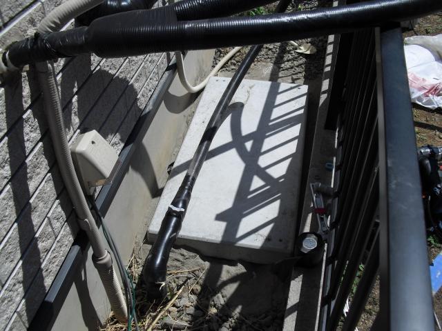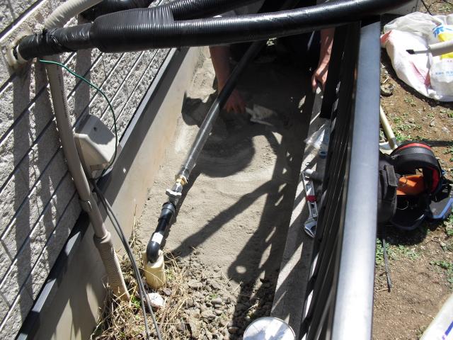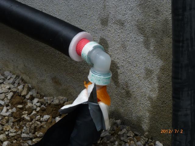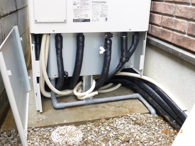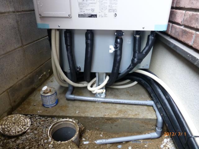 ↑ECOキュート専用 ドレイン配管は塩ビで下水マスに接続しました。