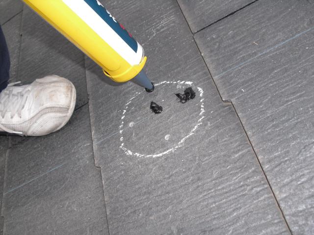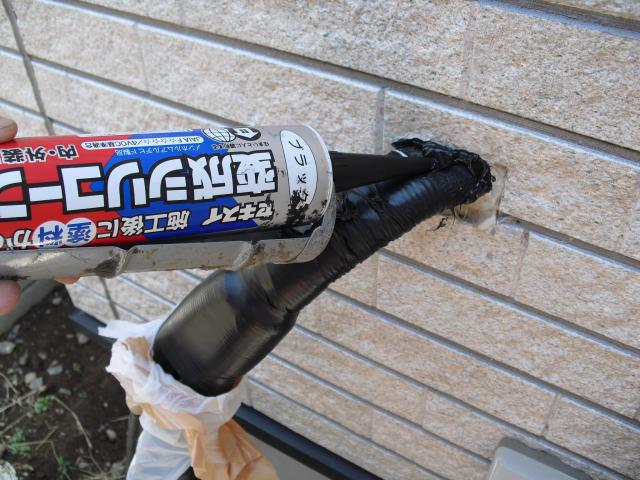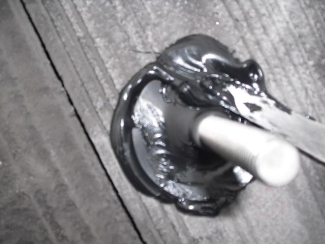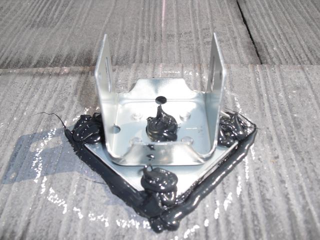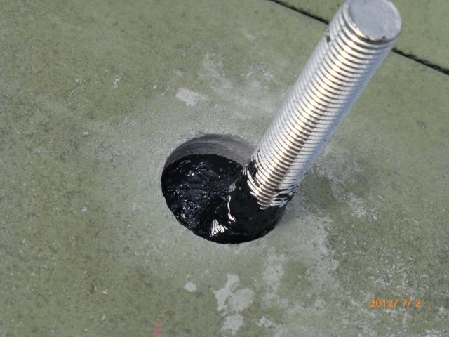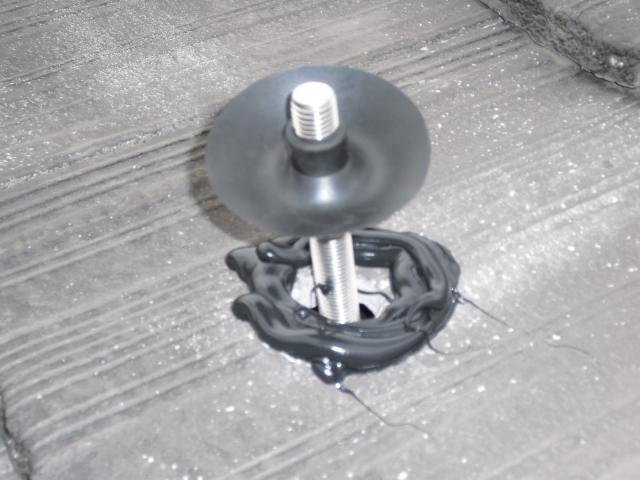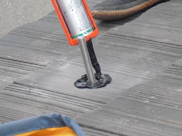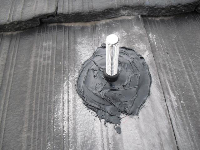 ↑アンカー金具にスポンジが乗ってるのは(バックアップ材)です。バック材の上にセメント瓦をかぶせます。