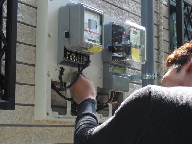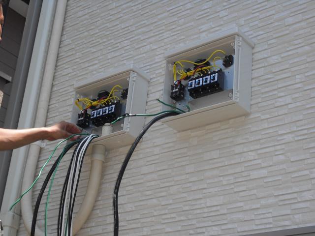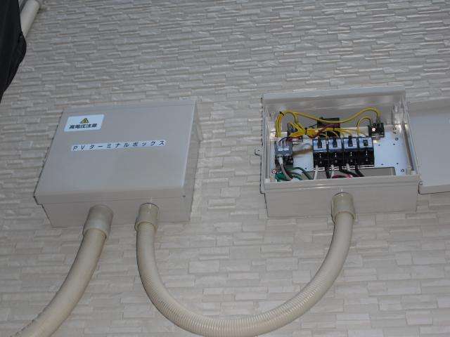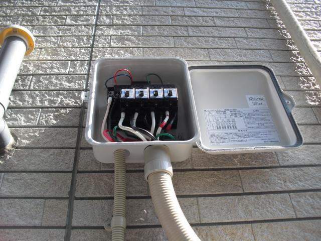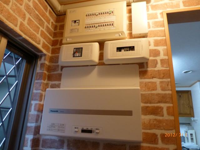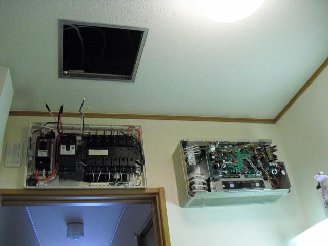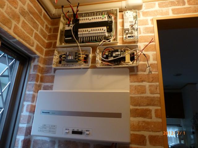 ↑ パワーコンディショナーと太陽光ブレーカーとオール電化ブレーカーと送信ユニットで御座います。綺麗に収まりました。