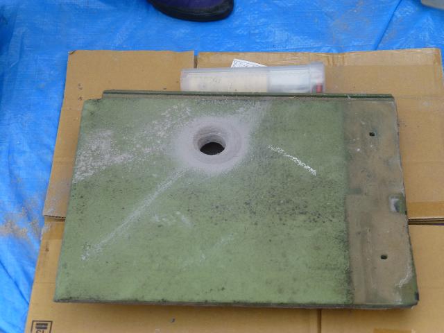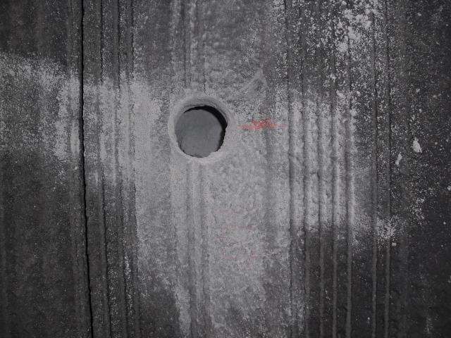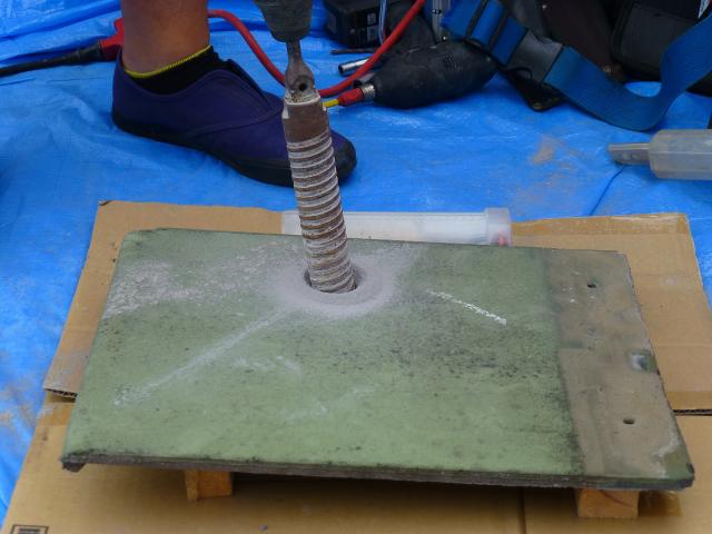 ↑アンカー金具を貫通うさせるために、ドリルで穴を開けます。