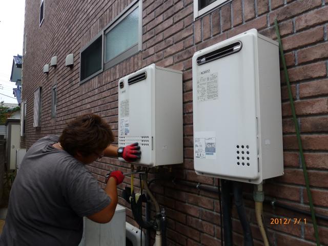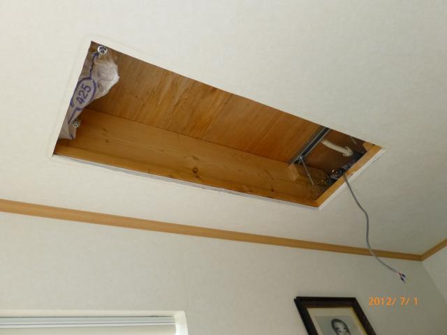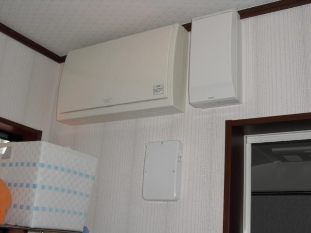 ↑ 既存の壁掛けガスエアコンを取り外し、200V電気エアコンを設置しました。(ダイキン) 2台壁掛け2台天井埋め込みエアコンです。