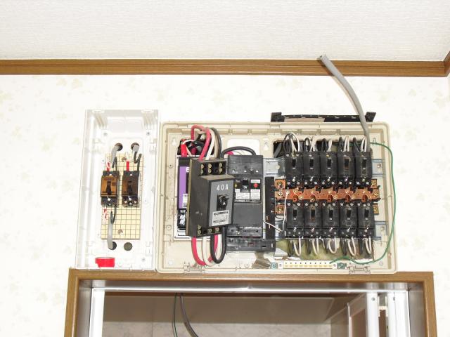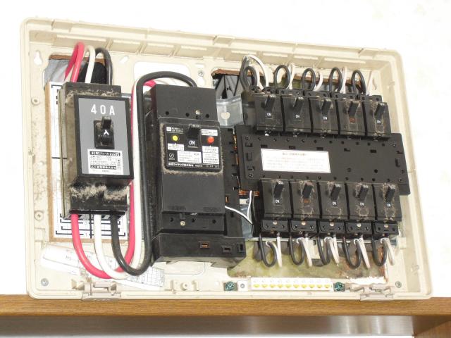 ← 分電盤は小ブレーカー(B)に空き回路がないためオール電化専用回路を取りつけました。