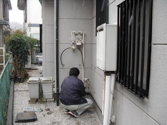 オール電化設置工事 2011年2月19日・↑既存ガス給湯器10年目で撤去して↓