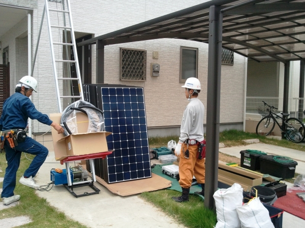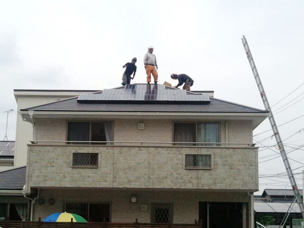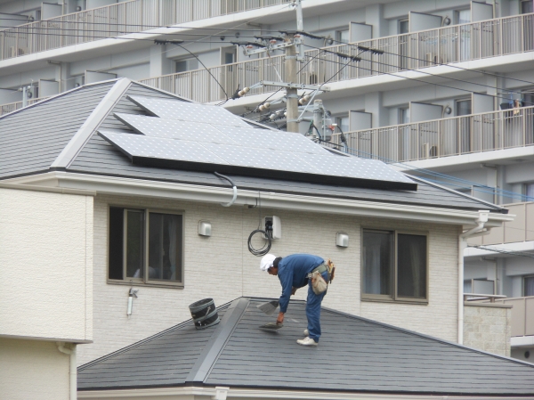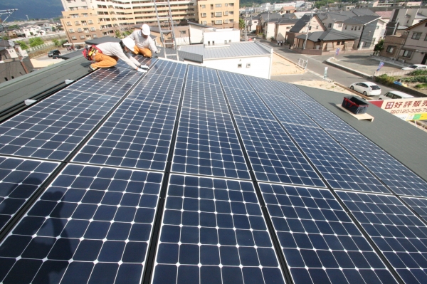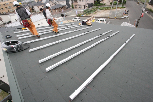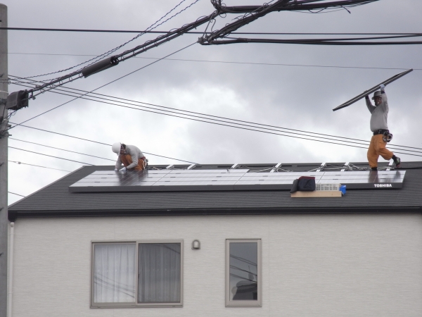屋根上では次々と太陽電池パネルが設置されていき・・