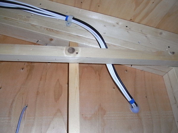 電気配線も屋根に着かない様に整えてラックへ結束します