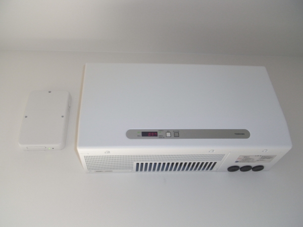 こちらは、TOTOの洗面所暖房機。暖房はもちろん、ハンズフリーのドライヤーにもなります。