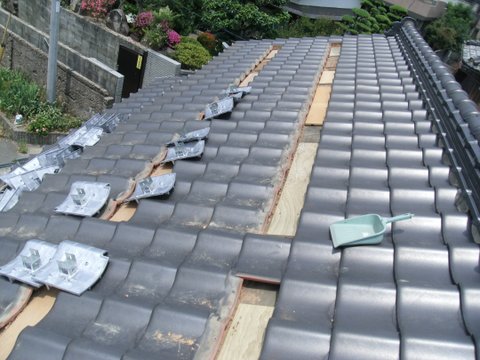 東芝の場合、支持瓦と補強版の間に「くさび」を入れるのが特徴です。