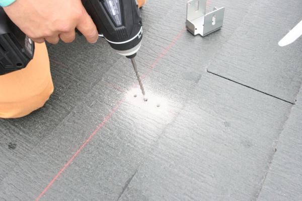 屋根に開けたビス穴を綺麗に清掃します(もちろん、穴の中に入っている切粉も取り除きます)