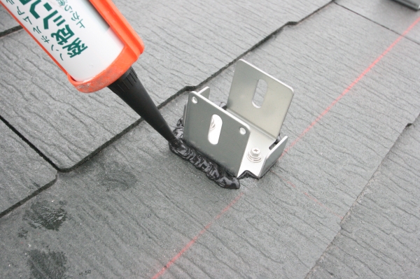 ビス穴にはコーキング剤を注入、防水処理を行ないます。