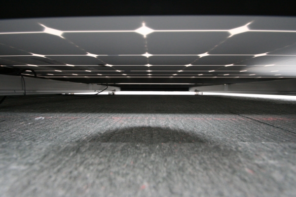 下から見上げるとこんな感じ・・電気もお湯も屋根の上で作ることになります。