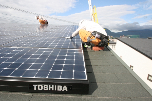インターネットで当社にお見積り依頼を頂きましたお客様宅での東芝 太陽光発電の工事です。