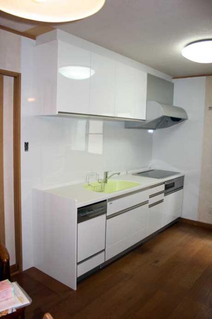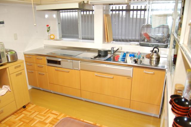 福岡県春日市若葉台のK様邸のオール電化×システムキッチン工事が無事に完了いたしました。最初は、工事前の写真にあるように、既存の流し台へビルトインのIHヒーターを設置していたのですが、システムキッチンへの取替えを追加発注頂きました。L型の流し台からI型のキッチンへ変更、コンロ位置は特注での位置変更になりました。