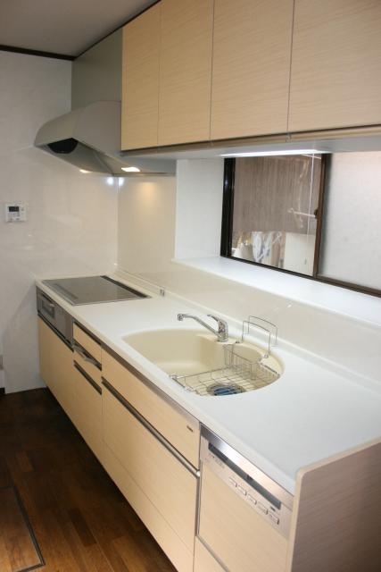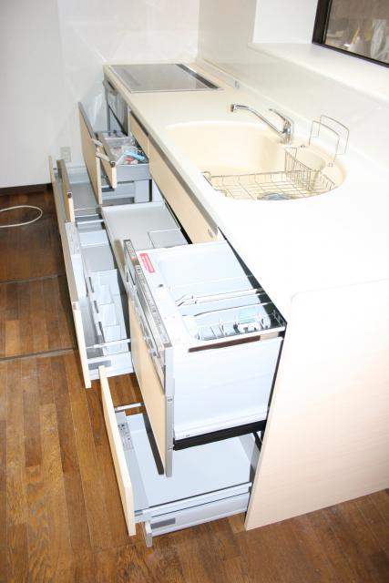 実は、このキッチンのかっこいい換気扇や、食器洗い乾燥機などは当社のアウトレット品