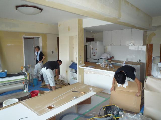 リフォーム工事の内容は、洋間の壁を撤去してリビングを拡張しての、LDK全面改装、システムキッチン取替、ガスコンロ>IHへ、和室を洋間へなど、広範囲に渡ってのリフォームとなりました。