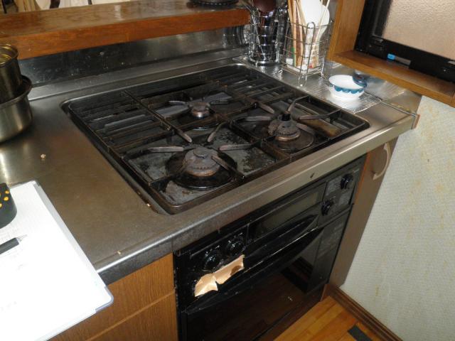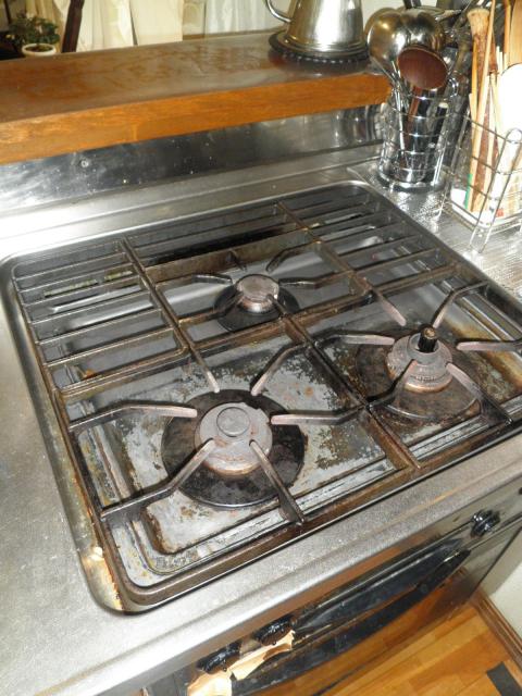 まずはガスコンロとガスオーブンを取り外して、「清掃」を行います。