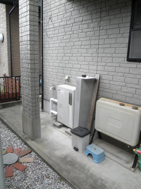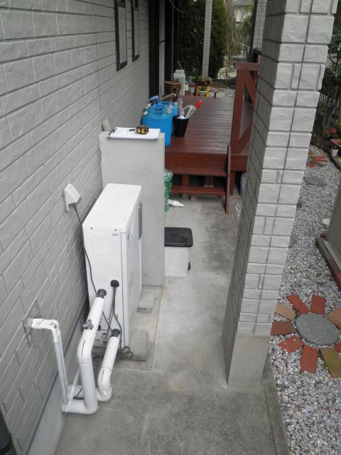 温水器の配管(お湯、水、追焚き)と電気配線などを全て見えないように(隠蔽配管)を行いました。