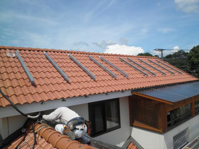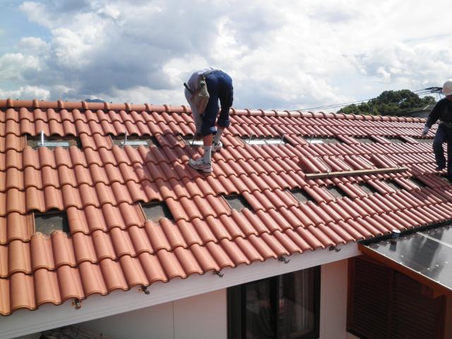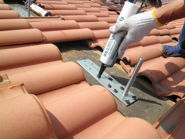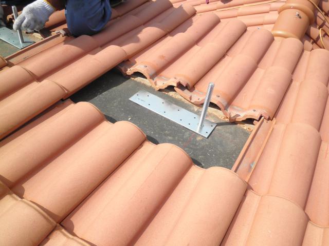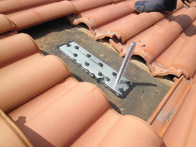 まずは、瓦を剥いで、アンカーを固定していきます。