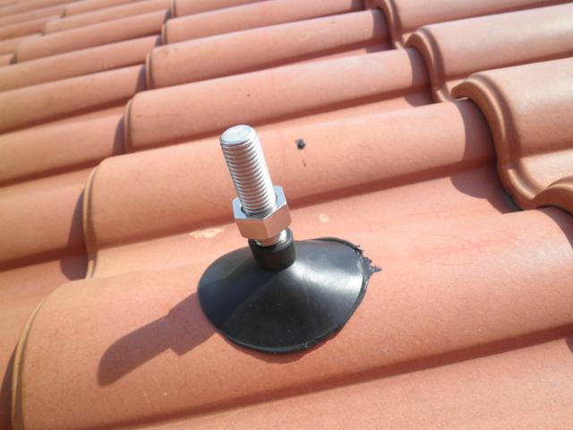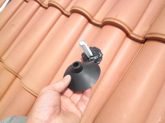 瓦とボルトの隙間にも防水コーキングをして、ゴムキャップを圧着させて・・